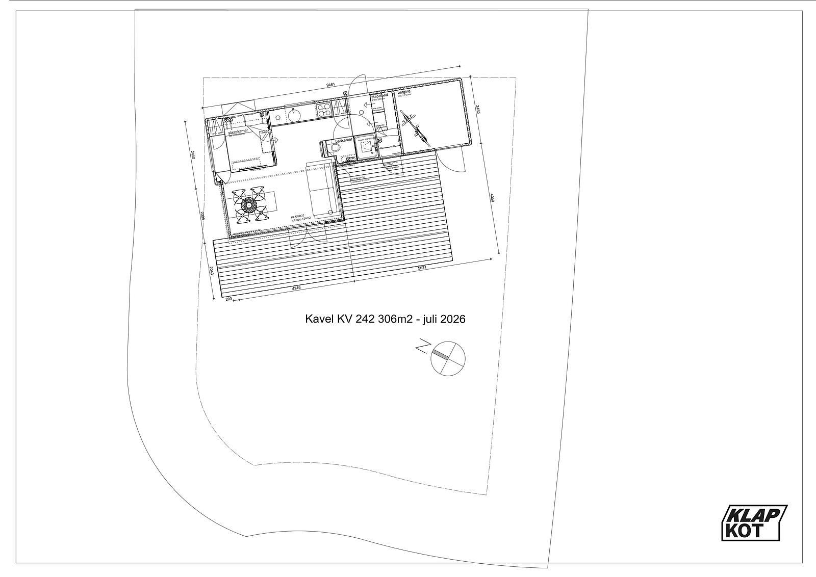 Door het vele glas loopt binnen en buiten in elkaar over. En dat komt volledig tot zijn recht op het mooie park. Jouw Klapkot beschikt over een eigen vlonder van maar liefst 25 m², gemaakt van Bilinga hout. Wil je de vlonder uitbreiden met een veranda? Dat maken we graag op aanvraag. De vlonder heeft een gunstige zonligging bij alle kavels.