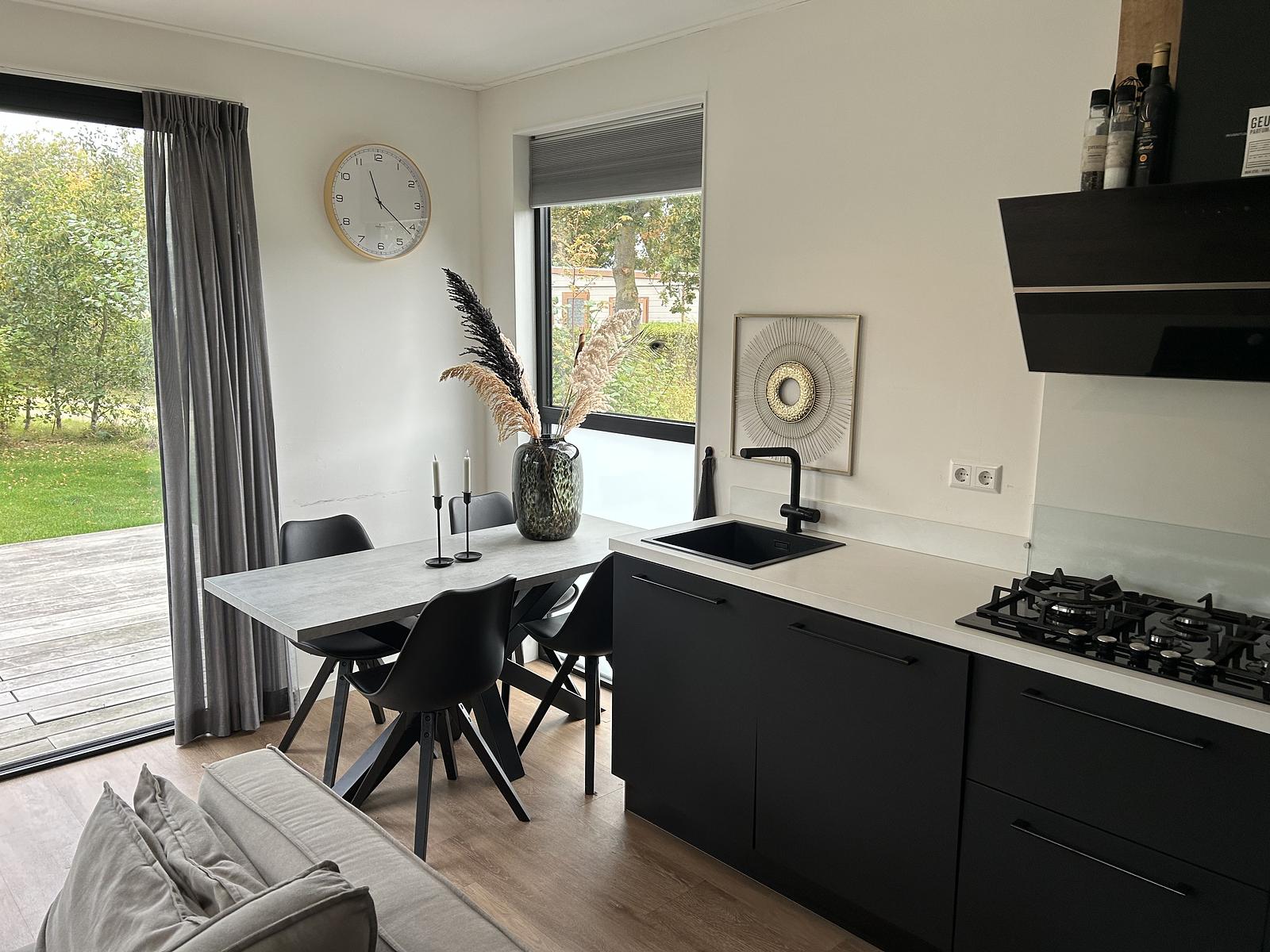 Deze ruime, duurzame en moderne cabin komt per direct beschikbaar op een rustige locatie dichtbij het centrumgebied van Vakantiepark De Klepperstee.