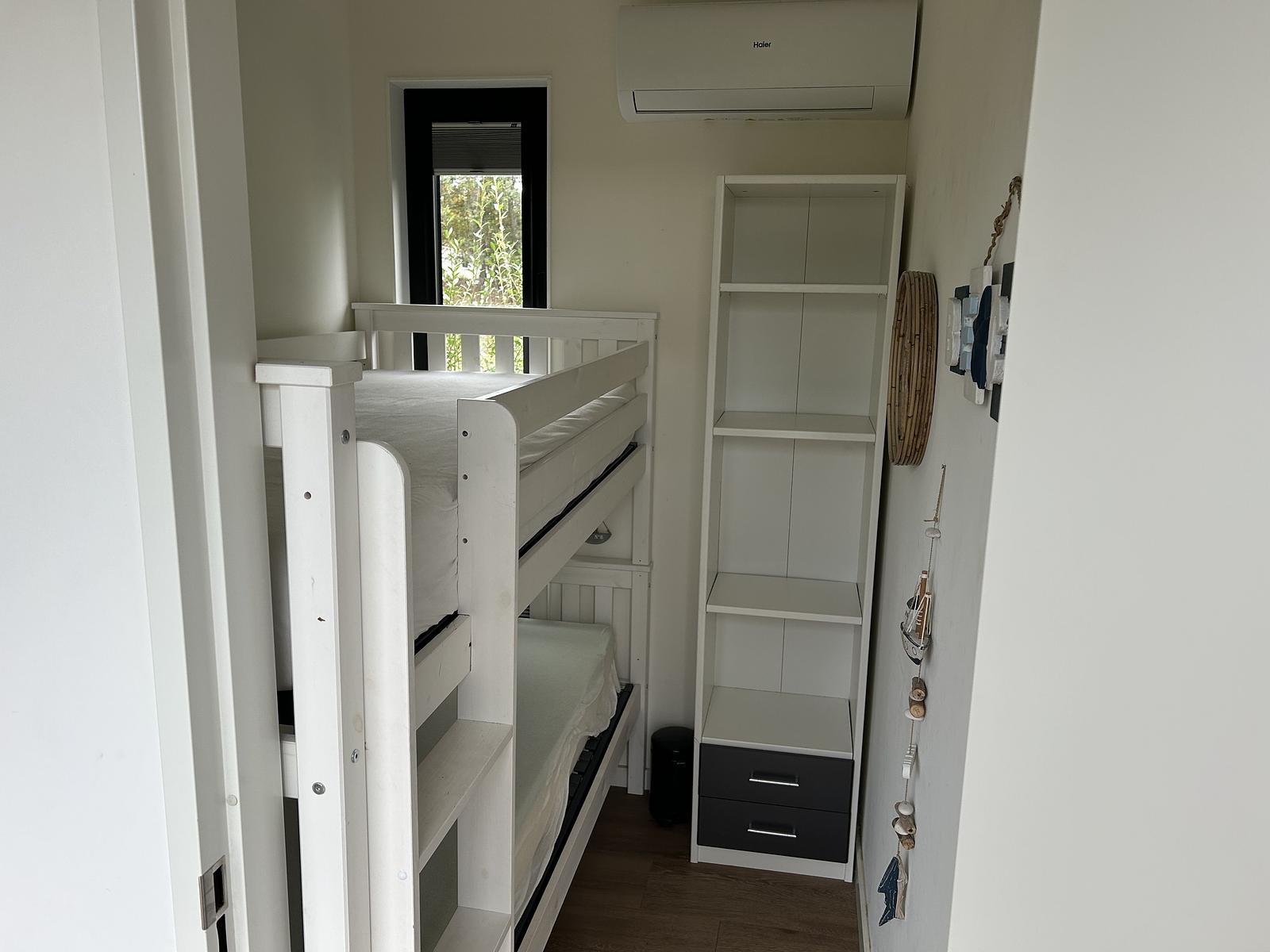 Er zijn 3 slaapkamers aanwezig: een ruime masterbedroom, een slaapkamer met stapelbed, een kleinere slaapkamer waar momenteel een ledikant staat maar ook een eenpersoonsbed zou passen. Tevens is er een slaaploft in deze cabin, waardoor je nog extra slaapruimte kunt creëren. Deze ruimte kan ook als opslag dienen.