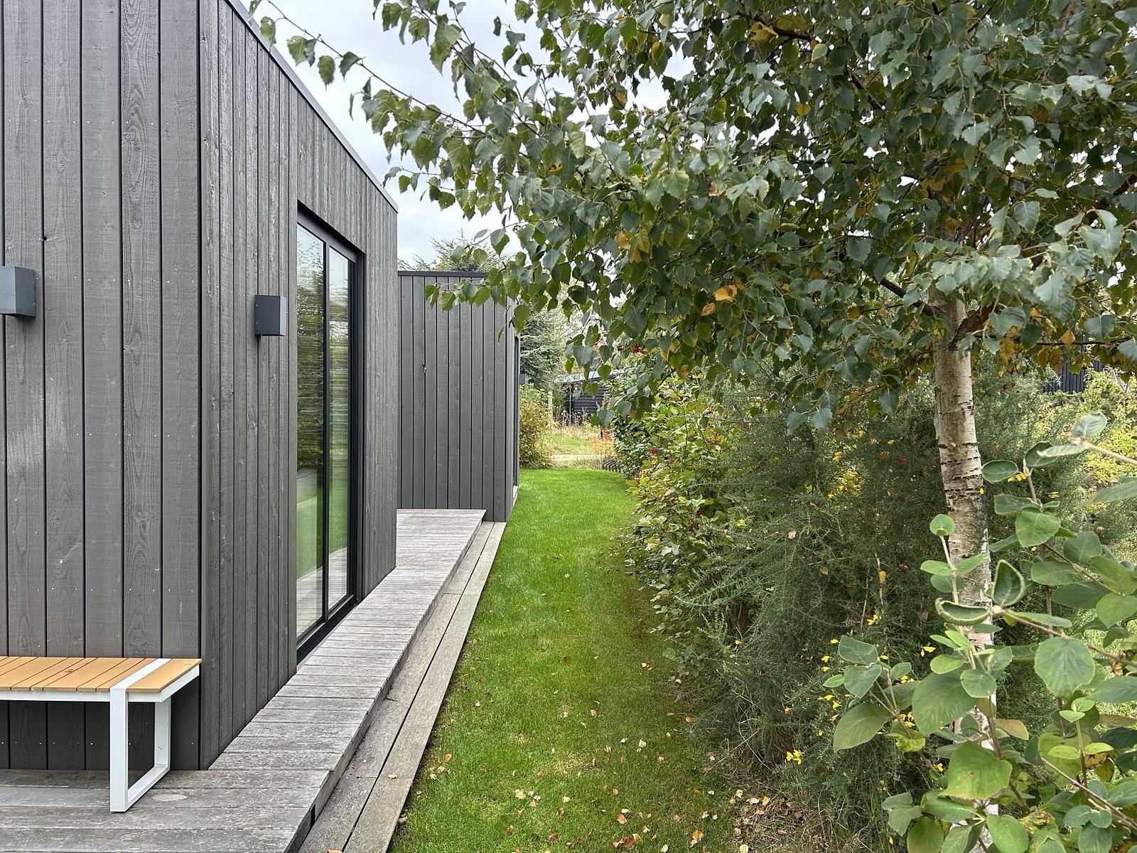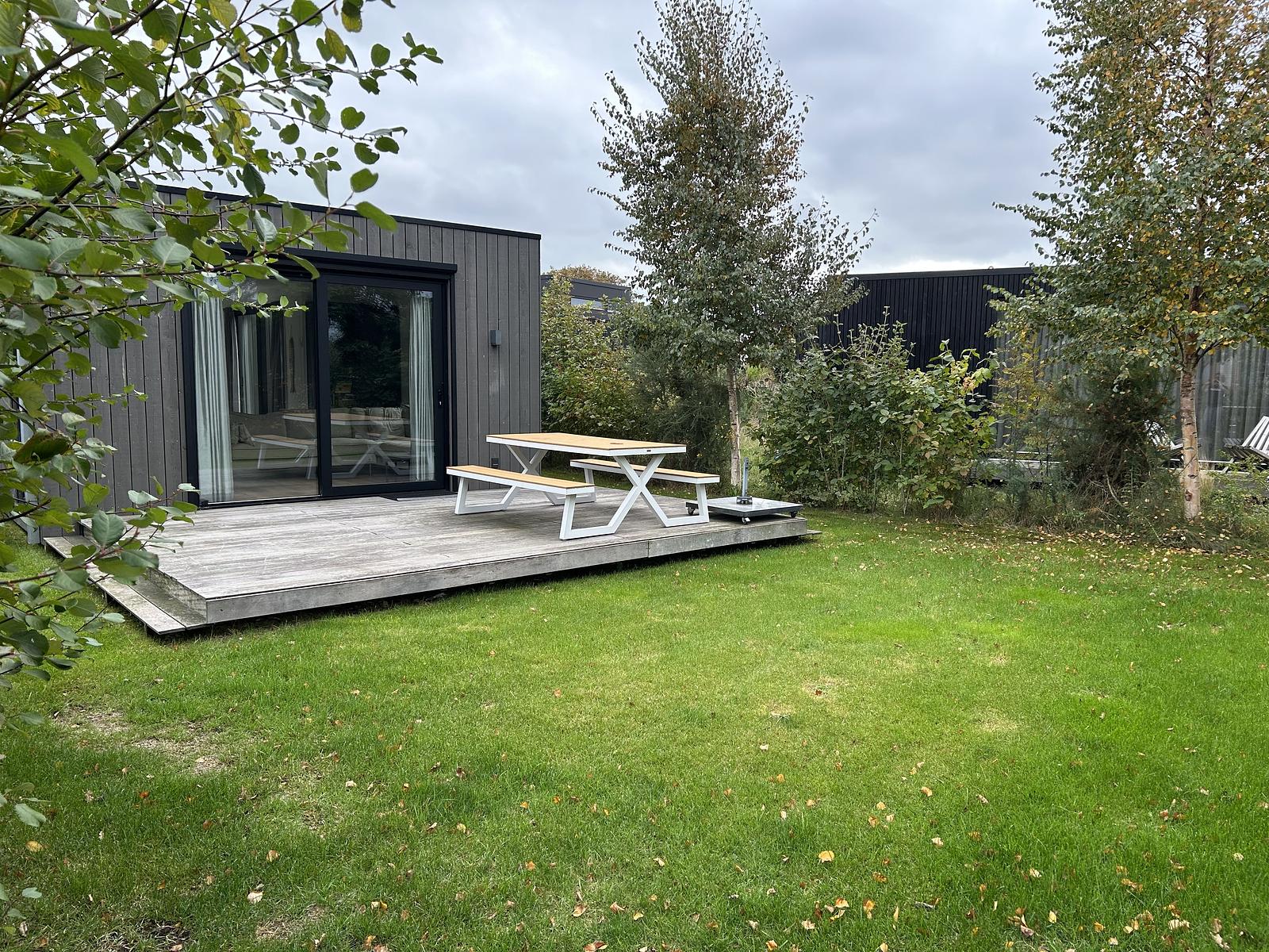 De tuin is zeer goed onderhouden en voorzien van een ruime vlonder en diverse zitjes zodat je op ieder moment van de dag een plekje in de zon, óf de schaduw kunt vinden. De hardhouten vlonder aan 3 kanten is door Avilla, de bouwer van deze cabin, gebouwd. Het grasveld is door een lokale hovenier aangelegd.